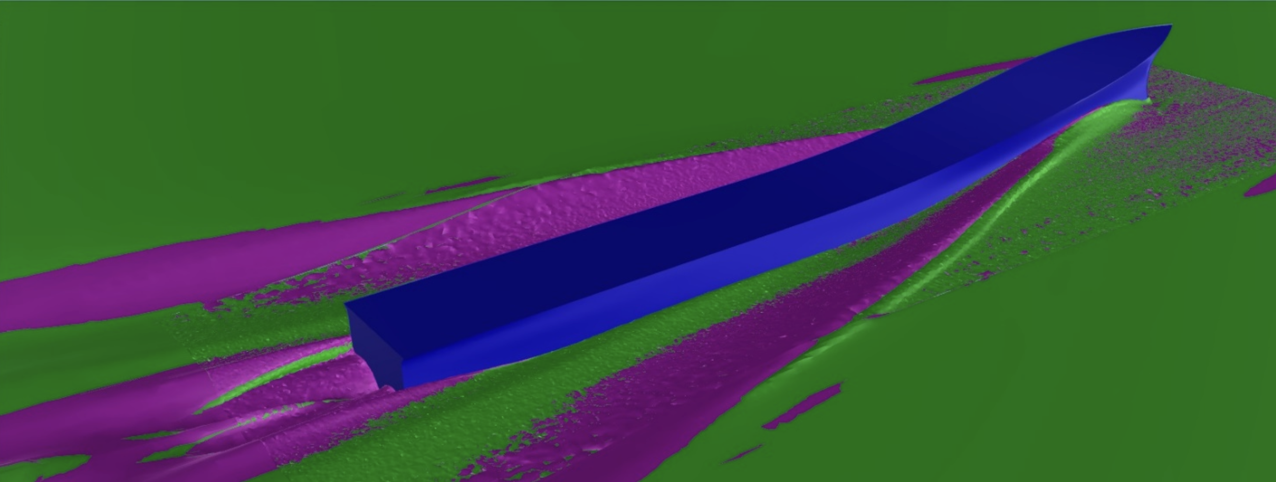 To resolve these problems, we conducted CFD analyses on iterative hull geometry modifications. To streamline the process, the initial variants were modeled without side hulls and superstructures, focusing on the central hull, which influenced both ventilation and bow wave behavior.