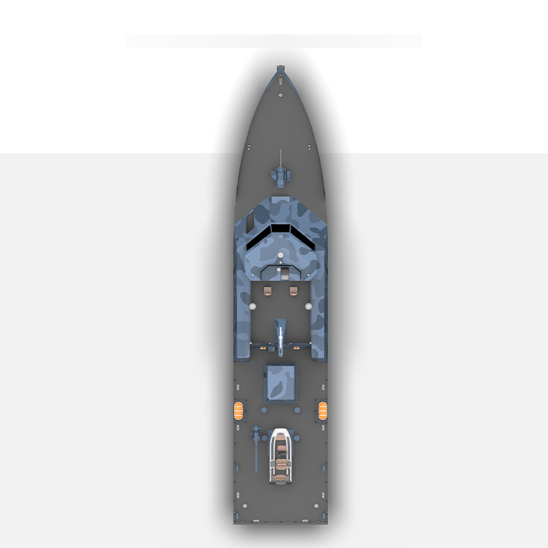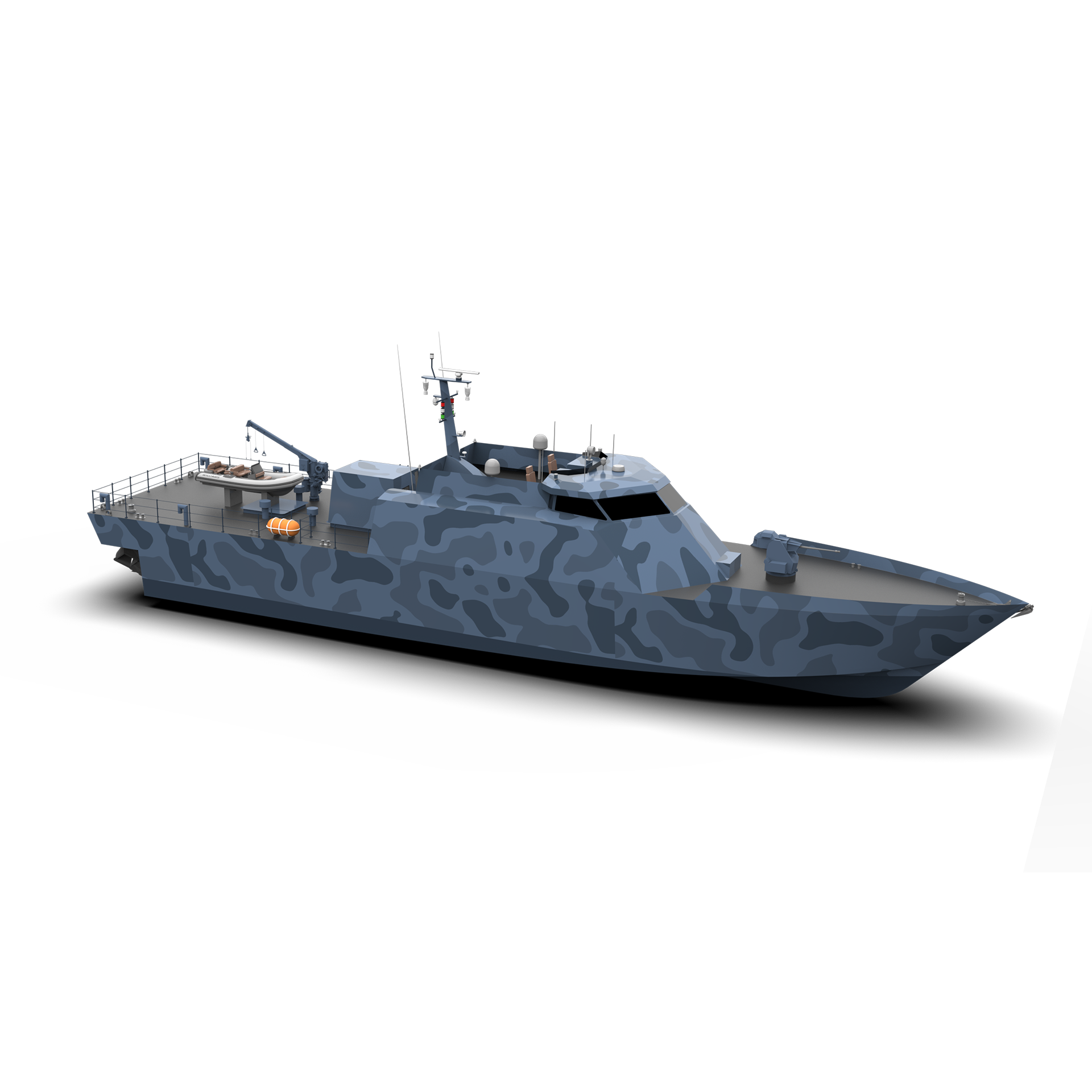 Big brother of the Fast Attack Craft family: the KM-FAC 40 is an all-aluminium, large fast attack craft delivering 50 knots — an extraordinary speed for a vessel of its size. Purpose-built for littoral attack, territorial waters protection, and maritime patrol duties, the platform is configured to carry small to medium caliber gun systems and mission-specific fittings to support sustained littoral operations and force projection tasks.