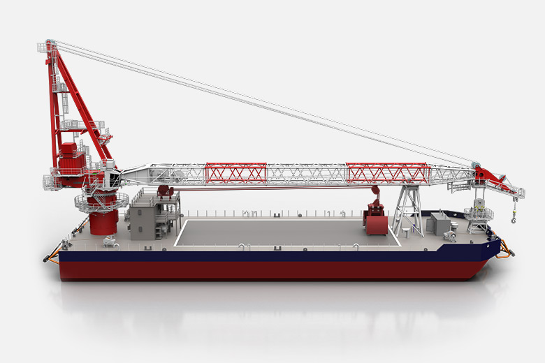 KM-FC200 Floating Crane is a 62-meter non-propelled barge accommodating a 200-ton lifting capacity advanced offshore crane. The barge is equipped with anti-heeling system to allow heavy lifting for infrastructure assembly and port construction. The crane may be supplied with a grabber to undertake dredging operations. Large deck also allows for offshore logistics as it is towed to mission area.