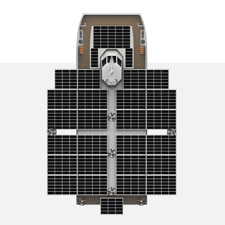 KM-FR30SW is an all-electric zero-emission passenger ferry solution with a combined wind and solar power generation system. Incorporation of wind turbines into the power generation system architecture allows battery charging during cloudy and windy days, even when moored in the harbour, to maximize power generation at all weather conditions.