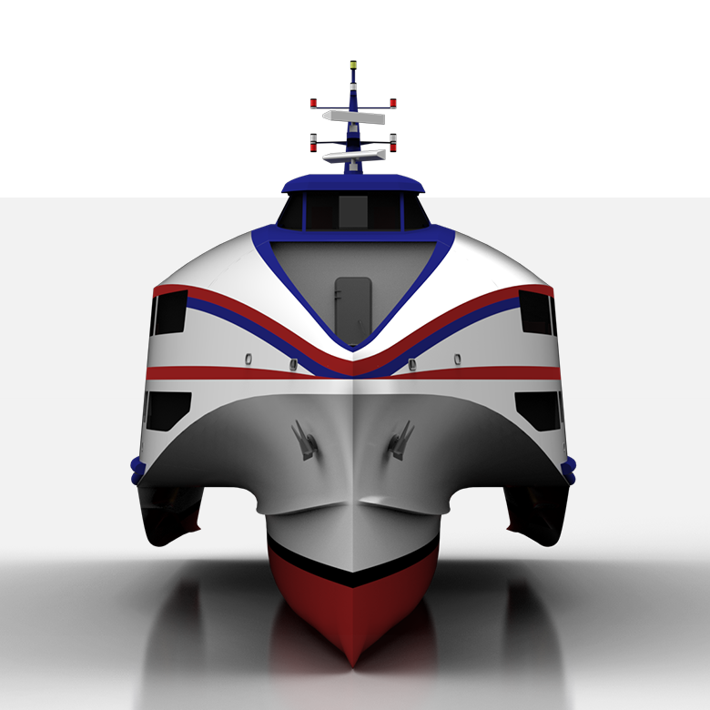 KM-FR42TH is a variant of our KM-FR42T solution to offer a low-emission fast passenger ferry. This solution offers reduction of CO2 by 50% by trading-off 25% passenger capacity, while still benefitting the superior seakeeping performance of KM-42T. This variant has an electric propulsion system that generates 50% of the required power from fuel cells using hydrogen as the clean fuel.