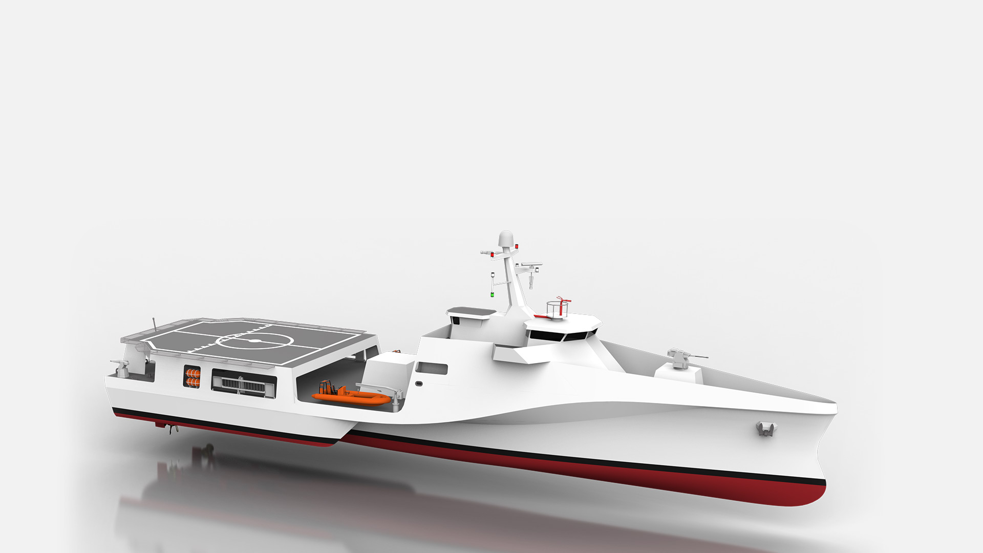 KM TRIPV700 is a trimaran OPV designed for superior seakeeping performance for increased operability. It facilitates a wider, larger and safer flight deck area for a 10-ton helicopter. The combined capabilities of the KM-TRIPV700 and the 10-ton helicopter provide increased SAR mission operability in high sea states. The Ship’s wide weatherdeck also provides an ideal area for configuring a variety of RHIB and USV arrangements.
