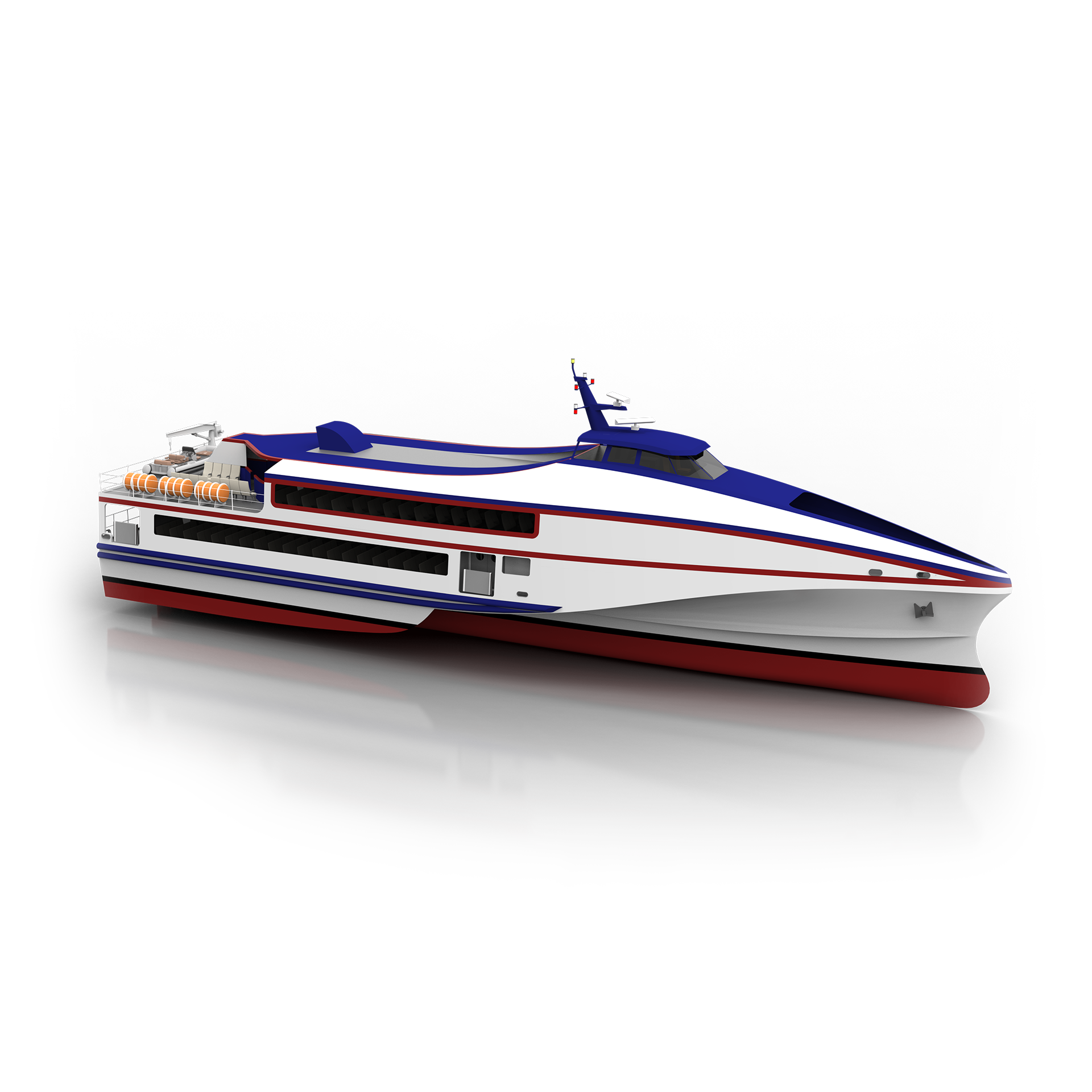 Our innovative 400 pax trimaran ferry KM-FR42T is introducing major improvements to the performance of conventional catamaran ferries. Its special hull form yields more than 15% savings in machinery power and its high forecastle wave piercing bow form significantly eliminates wet-deck damage risk and uncomfortable vertical accelerations at head seas.
